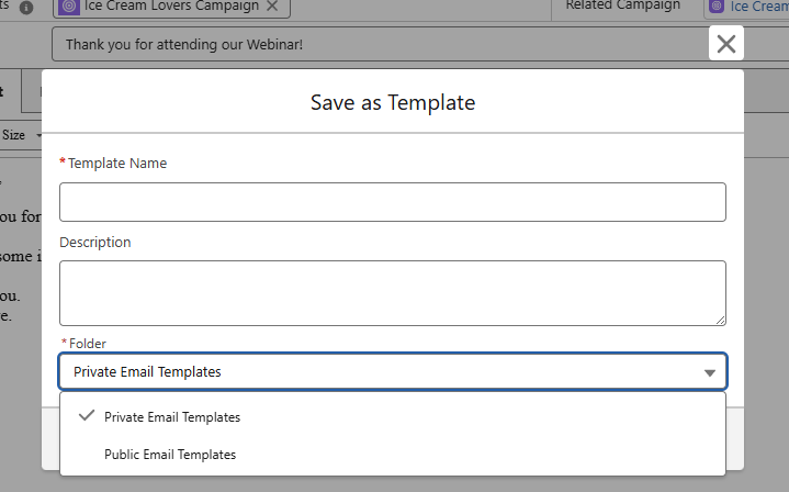 If you are creating a template then the next screen will ask you for the template name, description and which folder you would like to save it to: